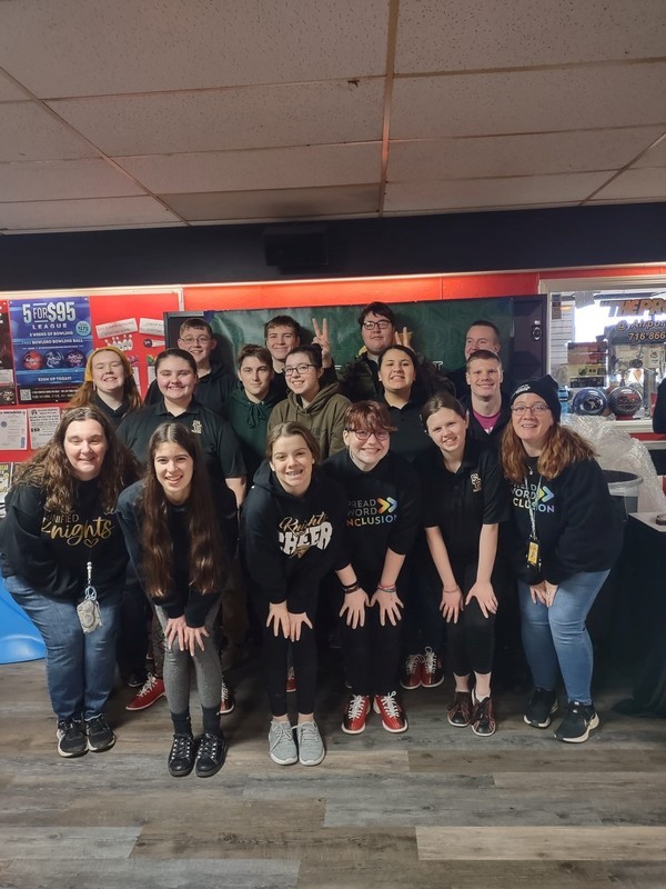 The Youth Advisory Committee (YAC) works year-round to promote Unified Sports and the inclusion of all students. One way they do that is through Choose to Include Week in March, which includes a spirit dress-up week and having students, faculty, and staff members sign pledge cards agreeing to choose inclusion and acceptance of all students. YAC also gets the whole school community involved by planning and participating in theme games for the Unified Basketball games, including engaging family members, students, and members of both teams in fun half-time activities. YAC has also participated in the annual Buffalo Polar Plunge for three consecutive years and will be attending this year. Last year, students from the Unified teams and members of YAC attended a field trip to see the movie “Champions,” and also volunteered at the Buffalo Bowl, a Special Olympics NY fundraising event at Highmark Stadium.
