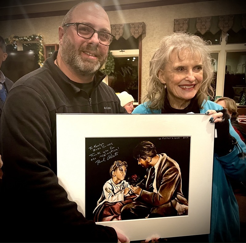 Adding to the grandeur of the experience, Abate gifted actress Karolyn Grimes, who played daughter Zuzu in “It’s a Wonderful Life,” with a personalized signed and framed print of his painting “A Father’s Love” featuring her and Stewart.