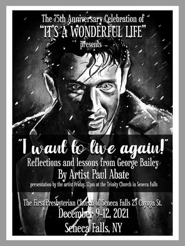 Abate contacted the “It’s a Wonderful Life” museum in Seneca falls and, after some delays due to the ongoing COVID-19 pandemic and lots of preparation, he presented “I Want to Live Again! Reflections and Lessons from George Bailey” on Friday and Saturday, December 10-11, 2021. There, he showed off many of his works, discussing them and his inspirations.
